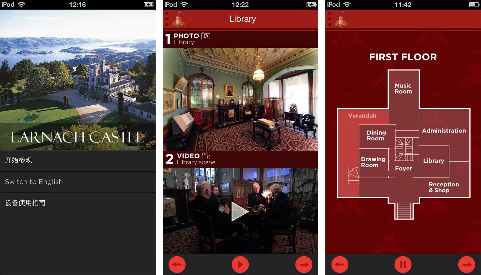 The images above are reduced-size iPod screenshots of the Larnach Castle Tour app, available at the App Store.