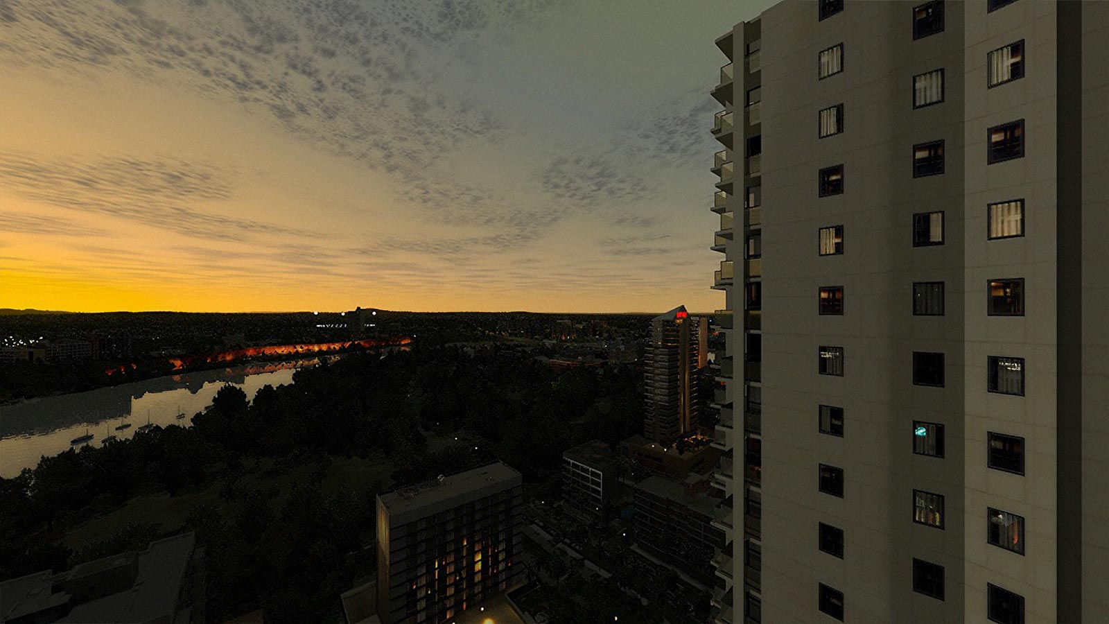 Animation Research Ltd. was commissioned by The Partners for one of our most ambitious projects yet – to photo realistically reproduce the entire city of Brisbane Australia, showing what the view would be from the windows of a proposed 70-story apartment complex situated in downtown Brisbane. Regulations ruled out the use of helicopters so we were required to create accurate views for every fifth floor at the four points of the compass and at different times of the day. Our team worked for 10 weeks to produce a time lapse animation of the city spanning a 24 hour period. Supported by Dolby digital environmental surround sound, the animation was 2800 × 700 pixels and screened at a massive 10 × 2 metres.