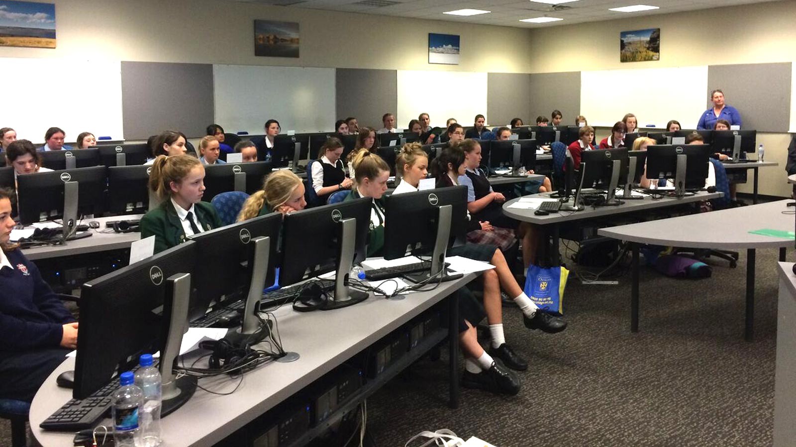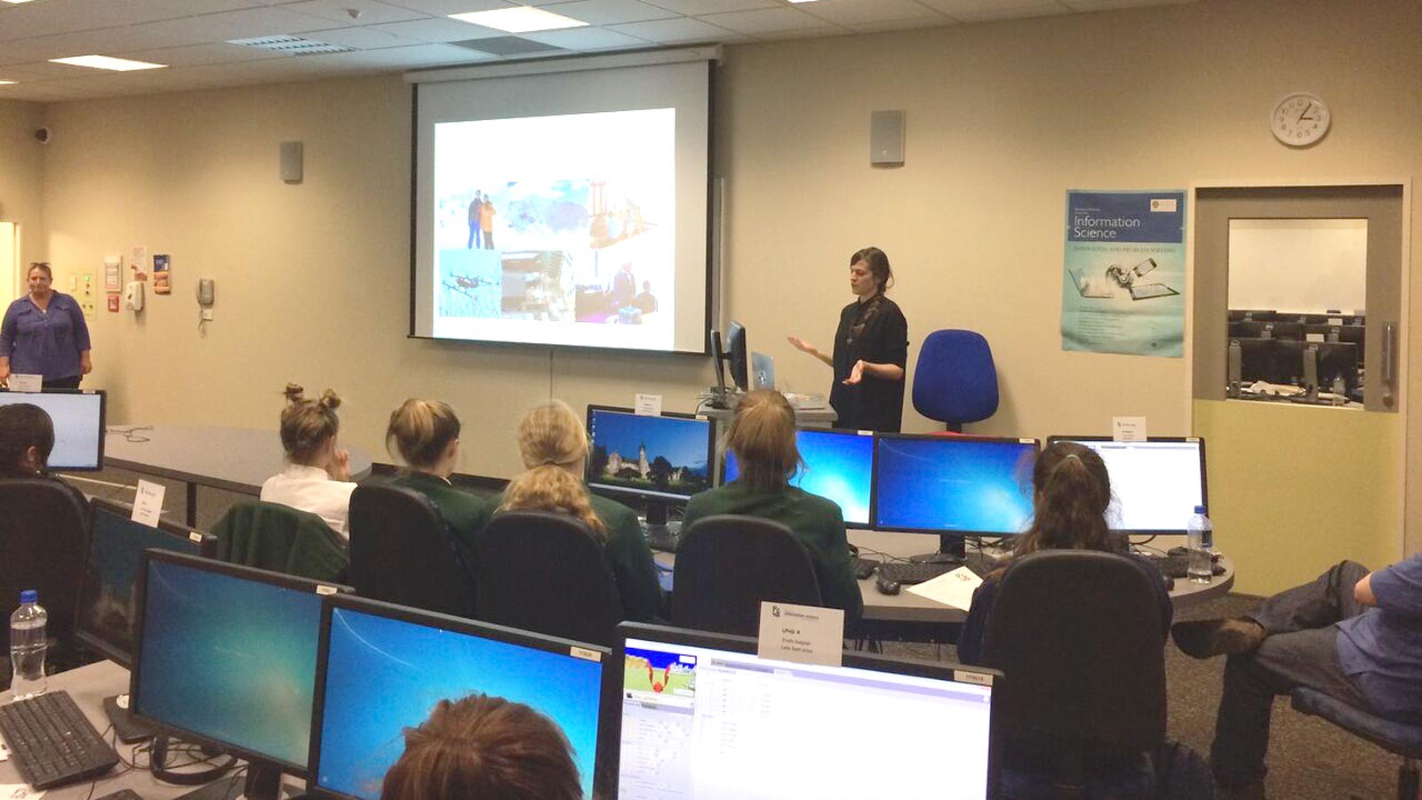 This Tuesday, I supported the Department of Information Science at the University of Otago as a judge and speaker at the Programming Challenge 4 Girls. The aim of this international one day event is to introduce junior high school girls to computer programming and to show them the fun and combination of logic, problem-solving and creativity that is involved in the process of programming. The task of the challenge was to program an animation telling the story of Aliens meeting Dragons in a 3D world. There were 30 teams from 9 different schools, with each team consisting of 2 girls. Some of them had no programming experience at all, whilst others have programming in their curriculum.
