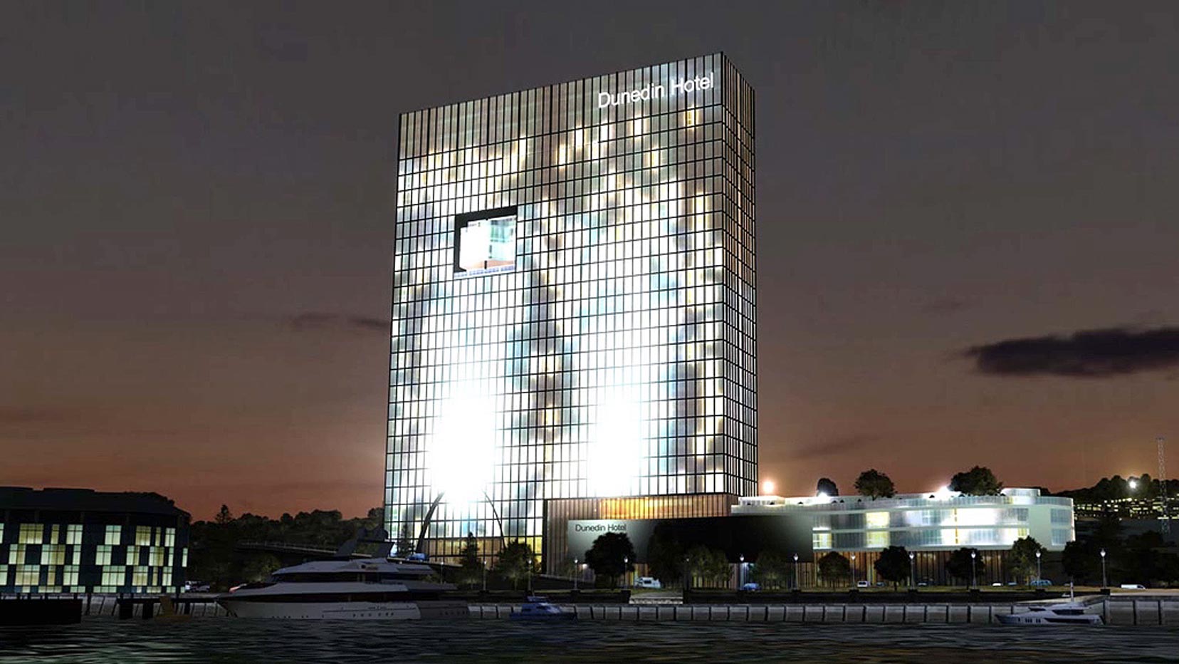 ARL was asked to visualise plans for a 28 storey hotel on the Dunedin waterfront in 3D, on behalf of development company Betterways Advisory Ltd. A team of international architects, including New Zealand firm Moller Architects, had been briefed to design a tall, elegant building with high-quality aesthetics. The slideshow above shows frames from the resulting animation, which played to a business audience at the Forsyth Barr Stadium on Friday, May 11.