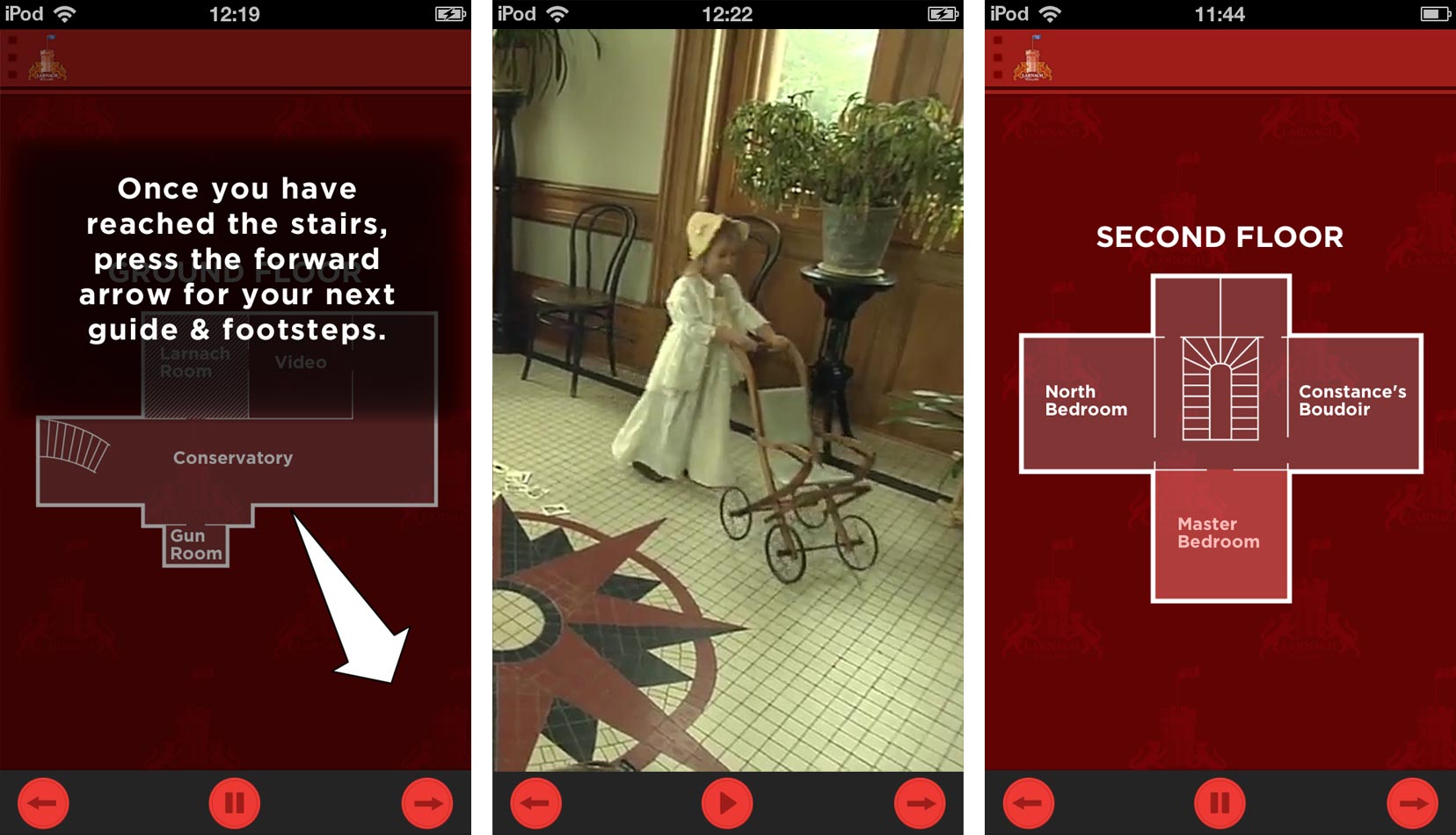 The images above are reduced-size iPod screenshots of the Larnach Castle Tour app, available at the App Store.